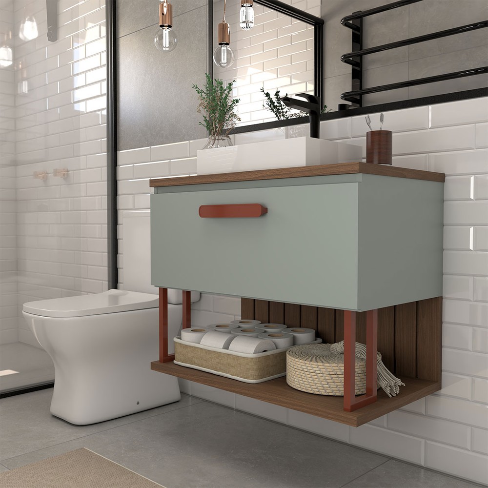 O(a) Armário de Banheiro Grandeza 80 Cm 1 Porta 100% Mdf Pistache/Freijó - Panorama Móveis é produzido em 100% MDF na escala de brilho Semi-Brilho, e possui um grau de dificuldade de montagem: Médio.