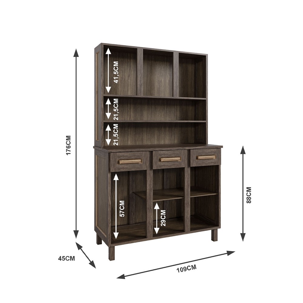 Não temos a medida exata da altura do balcão até a primeira prateleira desse armário. As informações detalhadas disponíveis são as dimensões totais: 176 cm de altura, 109 cm de largura e 45 cm de profundidade. Recomendo avaliar se essas medidas atendem ao seu espaço. Fique à vontade para perguntar mais!