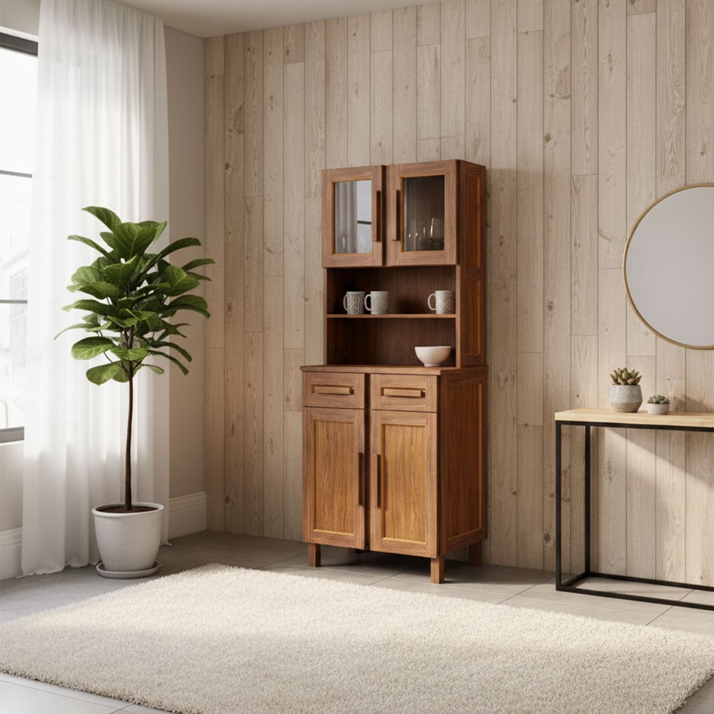 O(a) Armário de Cozinha Sergipe 4 Portas 2 Prateleiras com Vidro Ypê - Rodmoveis é produzido em MDP e Pinus na escala de brilho Fosco e Semi-Brilho, e possui um grau de dificuldade de montagem: Médio.