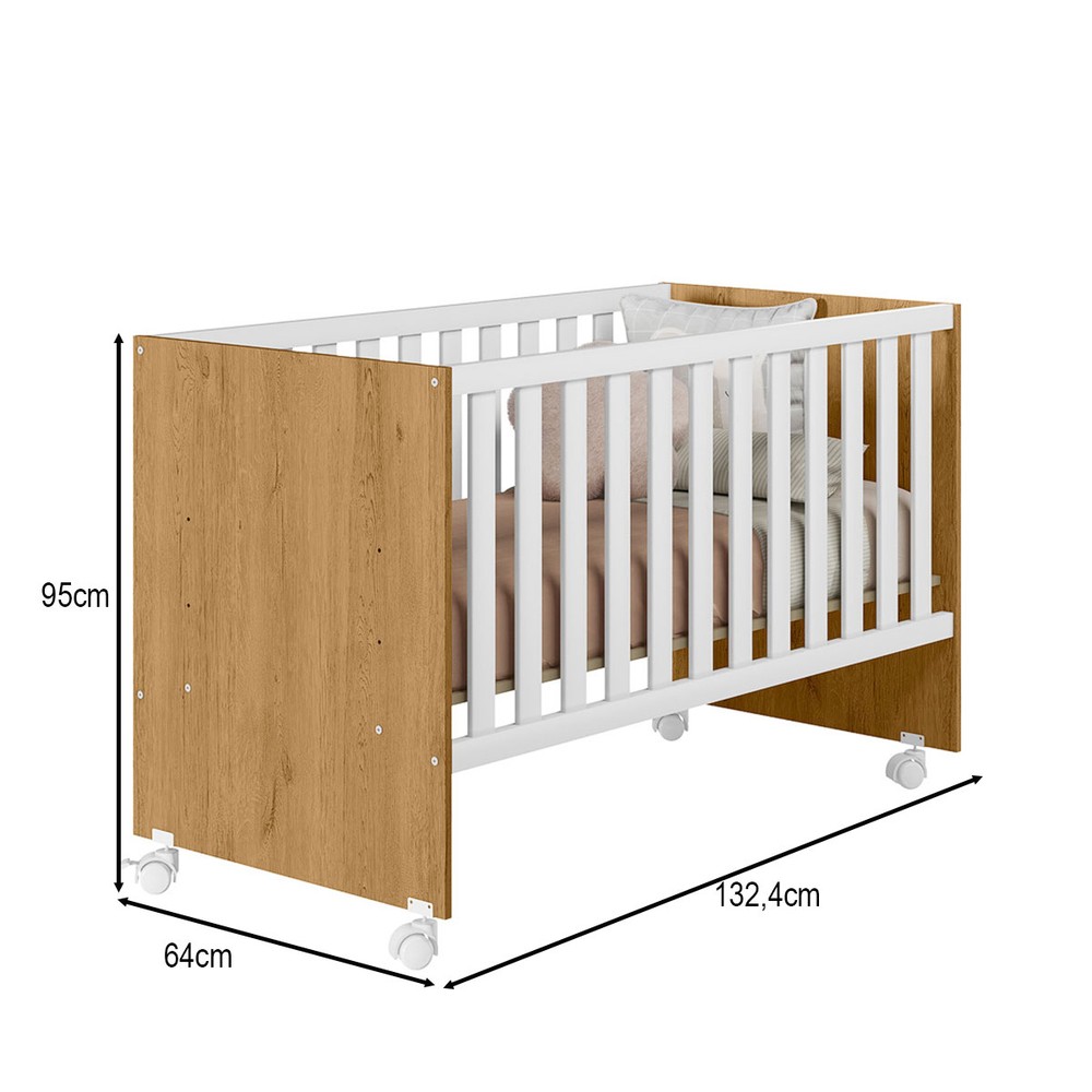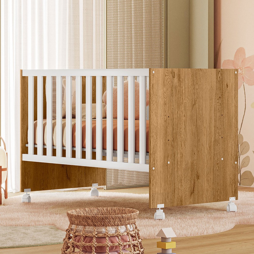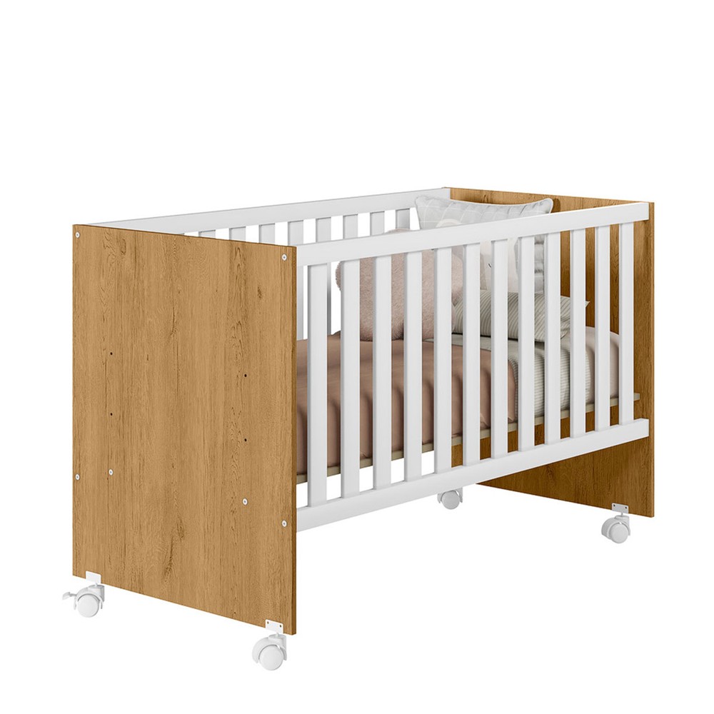 Berço Doce Sonho com Rodízio Freijó/Branco - Qmovi