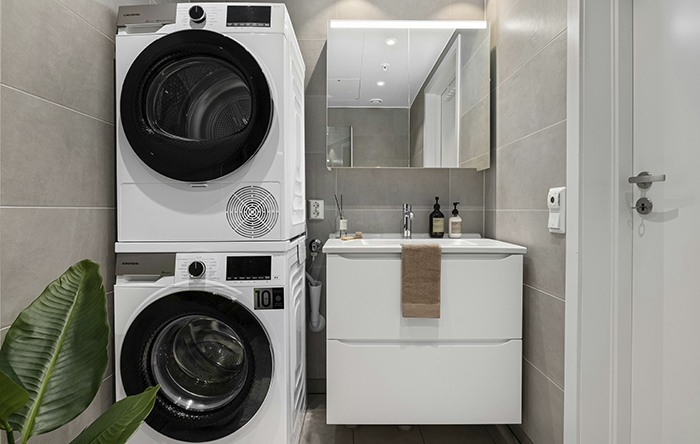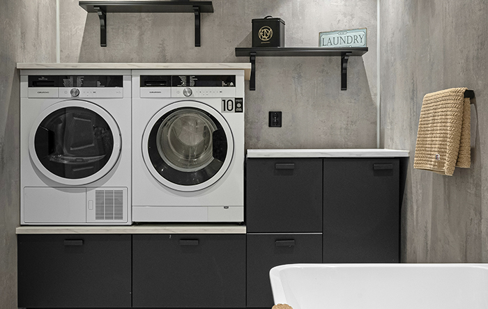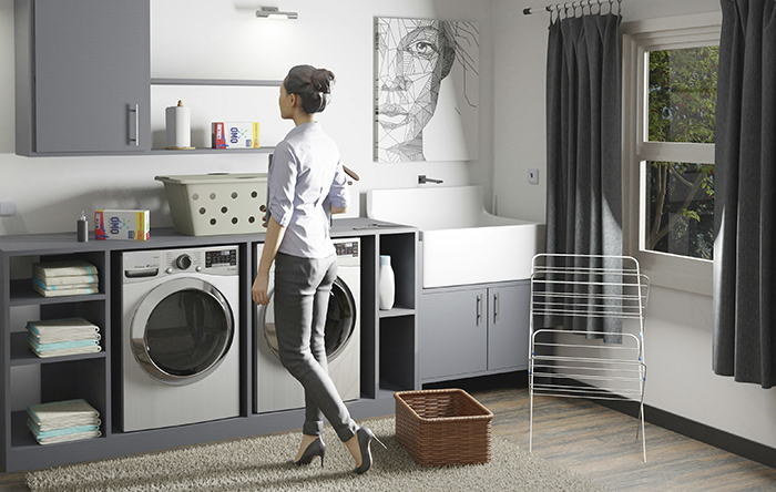 Caso você não possua muito espaço na sua casa e precise otimizar o espaço para estender roupas, a melhor opção é escolher uma máquina lava e seca, estas conseguem economizar o espaço de secagem com facilidade. As máquinas de abertura frontal – com abertura na frente, não para cima – são excelentes para usar o topo como se fosse uma bancada, otimizando ainda mais esse espaço. Para os tanques, uma das melhores opções são aqueles já embutidos com armários, ideais para esconder baldes, bacias e produtos de limpeza.