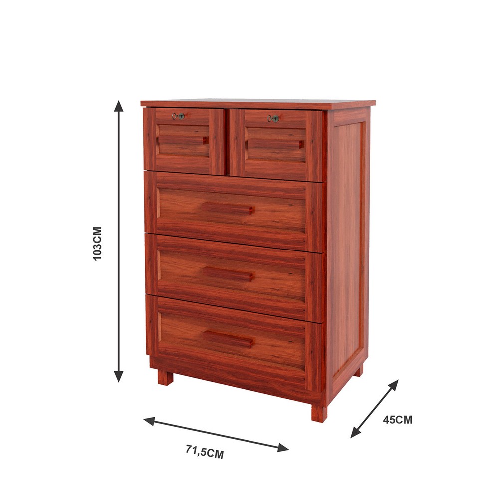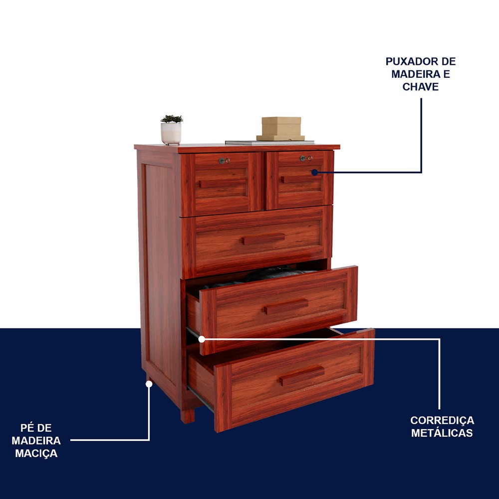 O(a) Cômoda Amazonas Clean 5 Gavetas Mel - Rodmóveis é produzido em Pinus e HDF na escala de brilho Fosco, e possui um grau de dificuldade de montagem: Médio.