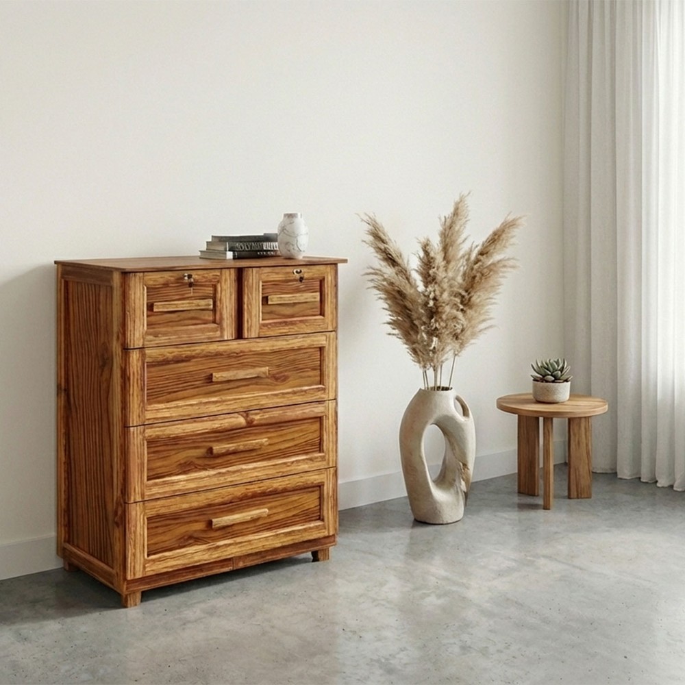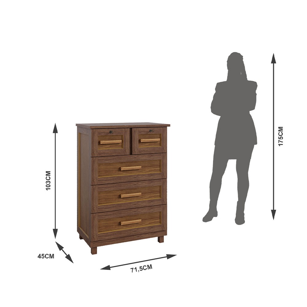 O(a) Cômoda Amazonas Clean 5 Gavetas Ypê - Rodmóveis é produzido em Pinus e HDF na escala de brilho Fosco, e possui um grau de dificuldade de montagem: Médio.