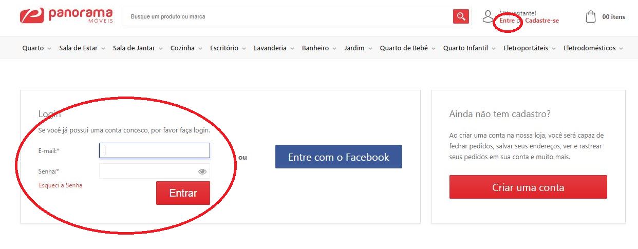 1. Primeiramente você precisa acessar a sua conta clicando no link no canto direito superior "Entre" e preenchendo os dados de Login, email e senha conforme a imagem abaixo: