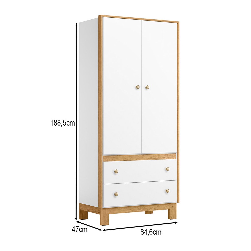 Guarda-Roupa de Bebê Flora 2 Portas 2 Gavetas Branco Acetinado - Qmovi