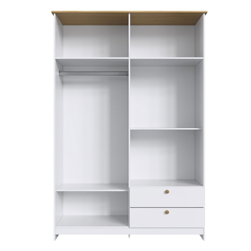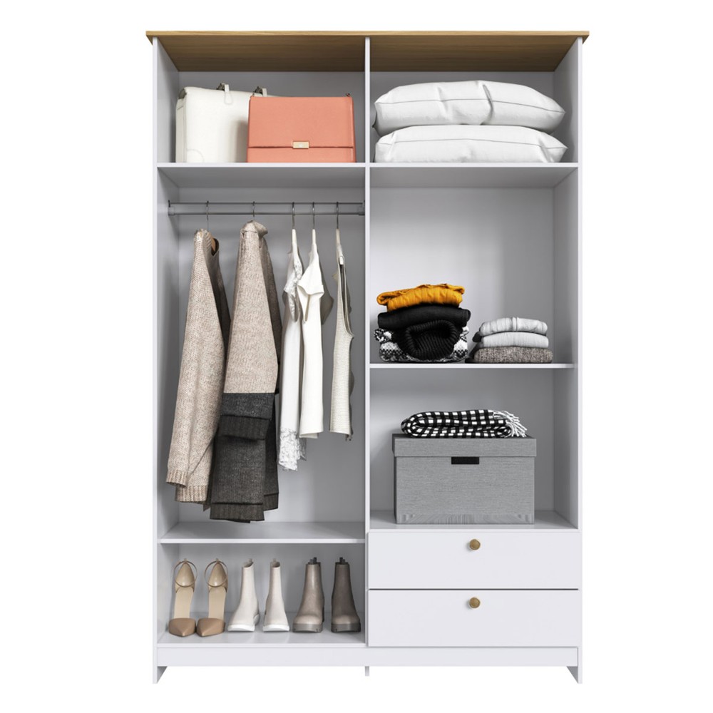 Guarda-Roupa Solteiro Americano 4 Portas 2 Gavetas Branco/Ipê - Decibal