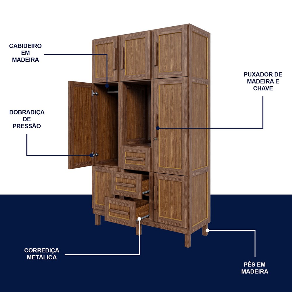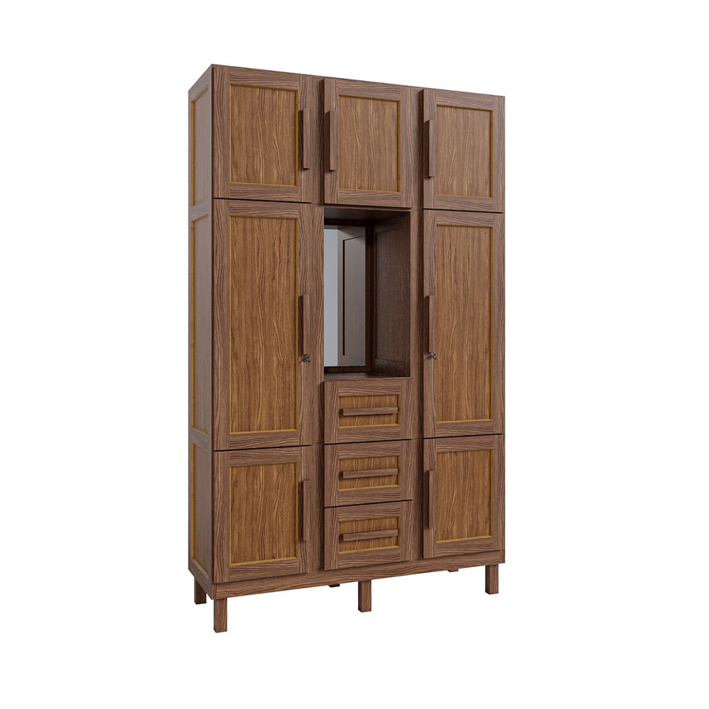 O(a) Guarda-Roupa Solteiro Pará 7 Portas 3 Gavetas 4 Prateleiras com Espelho Ypê - Rodmóveis é produzido em Madeira Maciça e HDF na escala de brilho Fosco, e possui um grau de dificuldade de montagem: Médio.