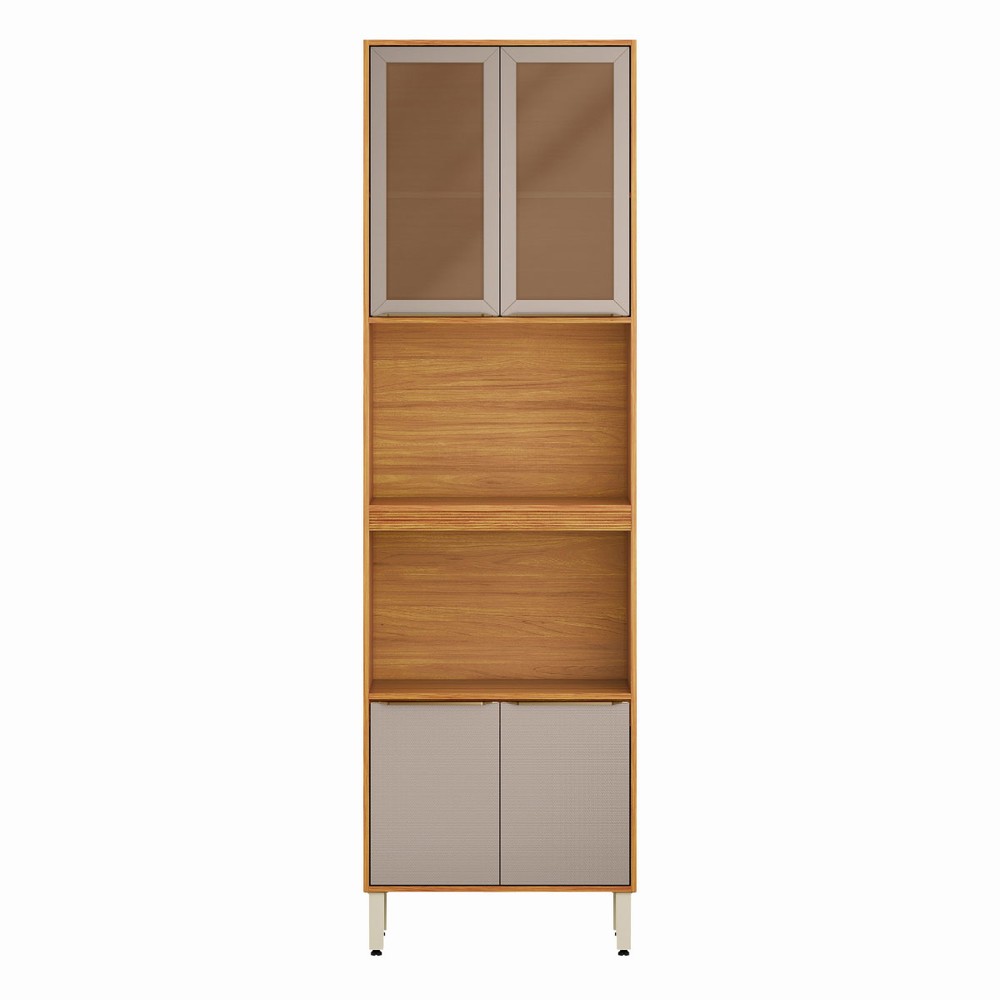 O(a) Paneleiro Plena Duplo Forno 4 Portas 1 Prateleira Cinamon/Nude - Demóbile é produzido em MDF na escala de brilho Fosca com Textura e Fosco, e possui um grau de dificuldade de montagem: Difícil.