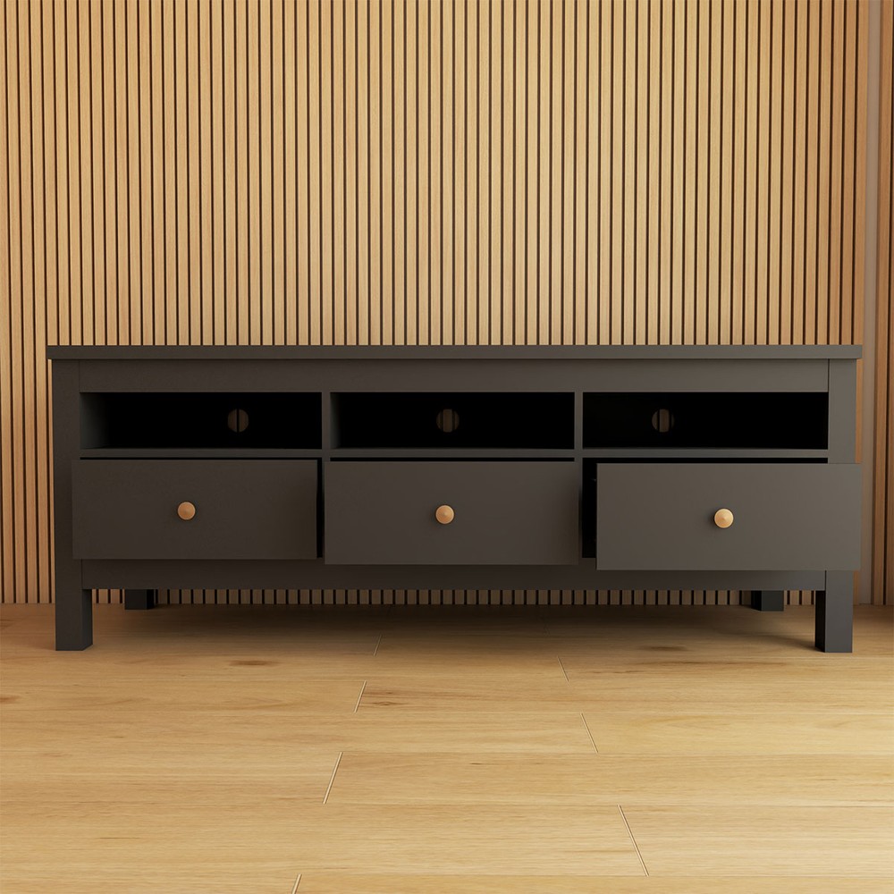 O(a) Rack para TV Até 65 Polegadas Spazio 3 Gavetas Preto - Panorama Móveis é produzido em MDP/MDF na escala de brilho Fosco, e possui um grau de dificuldade de montagem: Médio.